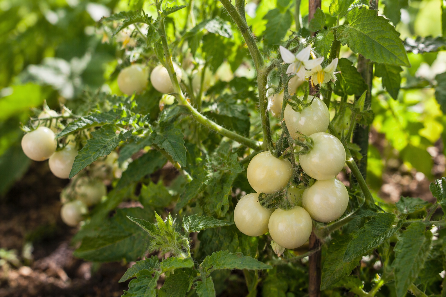 Vigorous, indeterminate heirloom plants produce abundant clusters of one‑ounce fruits in soft ivory to pale yellow shades. Sweet, mild, and fruity with low acidity and delicate, creamy skin, they ripen early and are perfect for fresh snacking, salads, and colorful presentations.